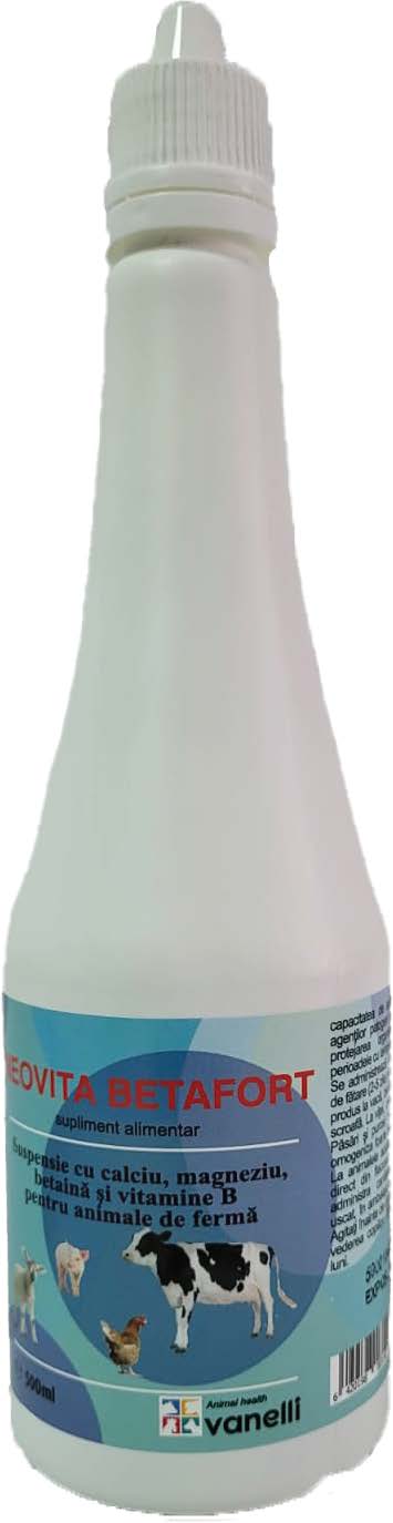 COMPOZIȚIE: 1000 ml produs conţin: Minerale: Carbonat de Calciu 378619 mg, Formiat de calciu 18865 mg ((conţine aprox. 9900 mg/kg acid formic), Gluconat de Magneziu 20306 mg, Clorură de Magneziu 3064 mg, Clorură de Cobalt 111 mg. Vitamine: Vitamina B1 160, 5 mg, Vitamina B2 240,8 mg, Vitamina B3 1204 mg, Vitamina B6 120 mg, Vitamina B12 0,602 mg, Pantenol 345 mg, Biotină 1,205 mg, Acid Folic 20 mg. Alte substanţe cu rol fiziologic: Monopropilenglicol 253897 mg, Glicerol 20306 mg, Betaină 1022 mg. Excipienti pȃnă la 1000 ml. UTILIZARE: Recomandat pentru gestionarea tulburărilor de metabolism din perioada de parturiţie (fătare), produsul are proprietatea, ca imediat după administrare, să furnizeze rapid necesarul de energie, menținând-o la un nivel crescut pe o perioadă prelungită de timp. Combinaţia echilibrată de nutraceutice (calciu, magneziu, complexul de vitamine B şi betaină), va conduce la scăderea apariţiei riscurilor precum: pareze periparturiene (febra laptelui, febra vituleră); retenţii placentare; metrite, mastite; cetoze; steatoză hepatică (ficat gras). Stimulează producţia de lapte şi îmbunătăţeşte calităţile nutritive ale acestuia (nivel de grăsime, proteine, etc), contribuie la scăderea incidenţei anemiilor datorită cobaltului şi vitaminelor B.